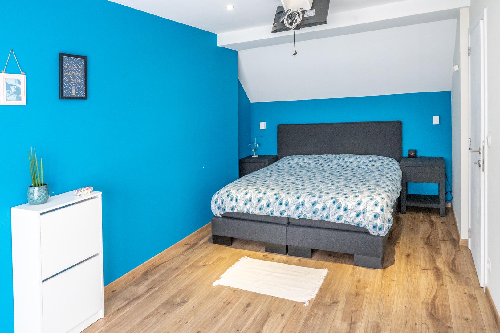 Boven heb je 3 grote slaapkamers waarvan 1 met aanpalende dressing en uitgerust met airco. Overal zijn er rolluiken en centrale verwarming aanwezig.