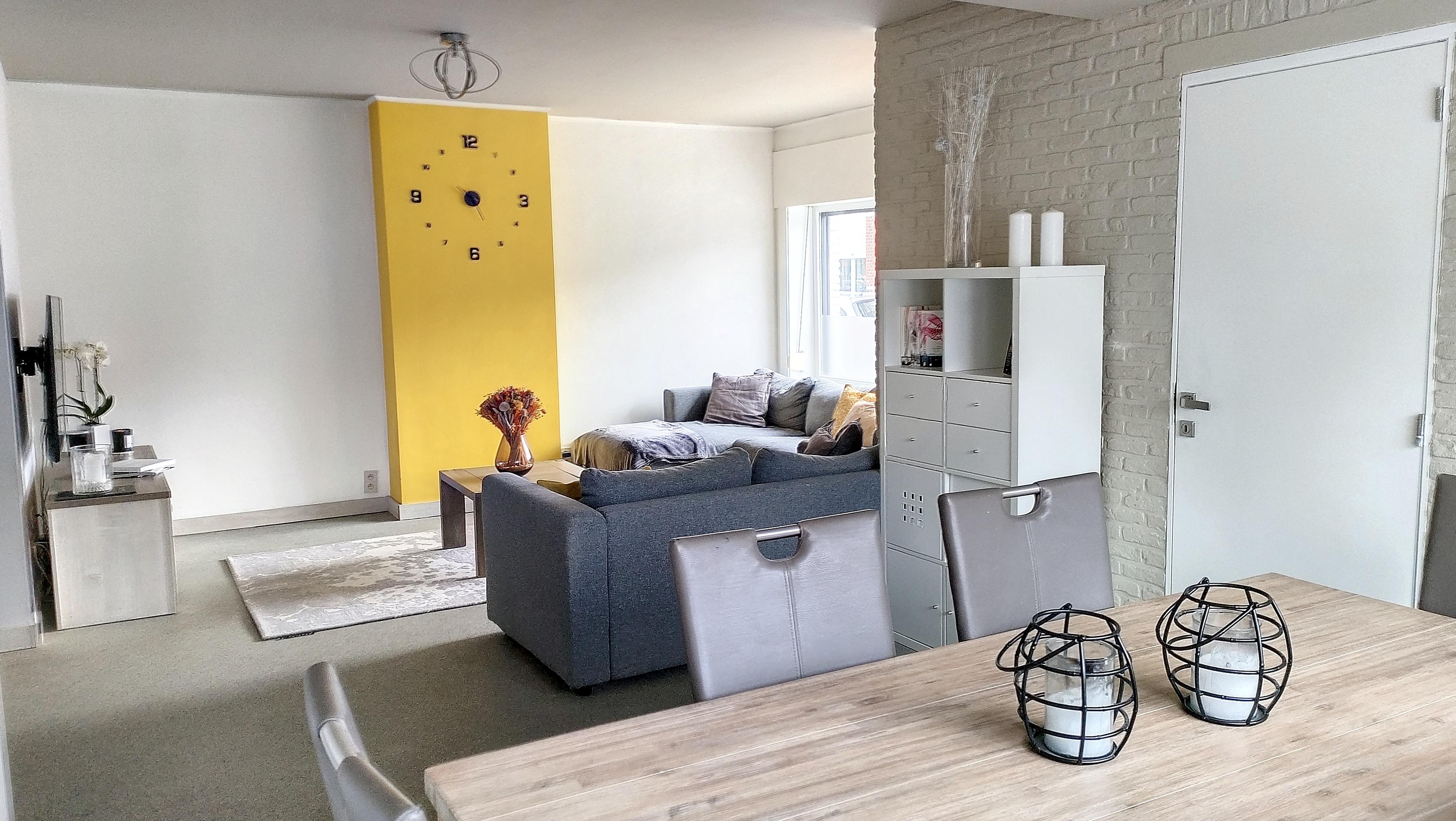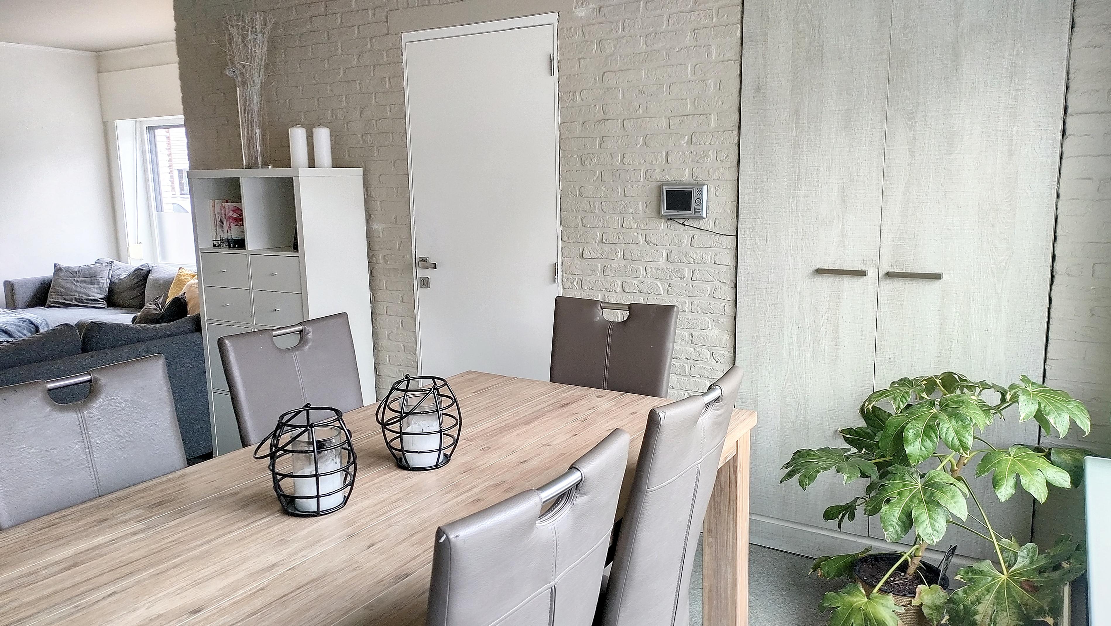 De indeling gaat als volgt: inkom met toilet, living met ruime zithoek, volledig geïnstalleerde keuken en badkamer met dubbele lavabo, ligbad en plaats voor droogkast en wasmachine.