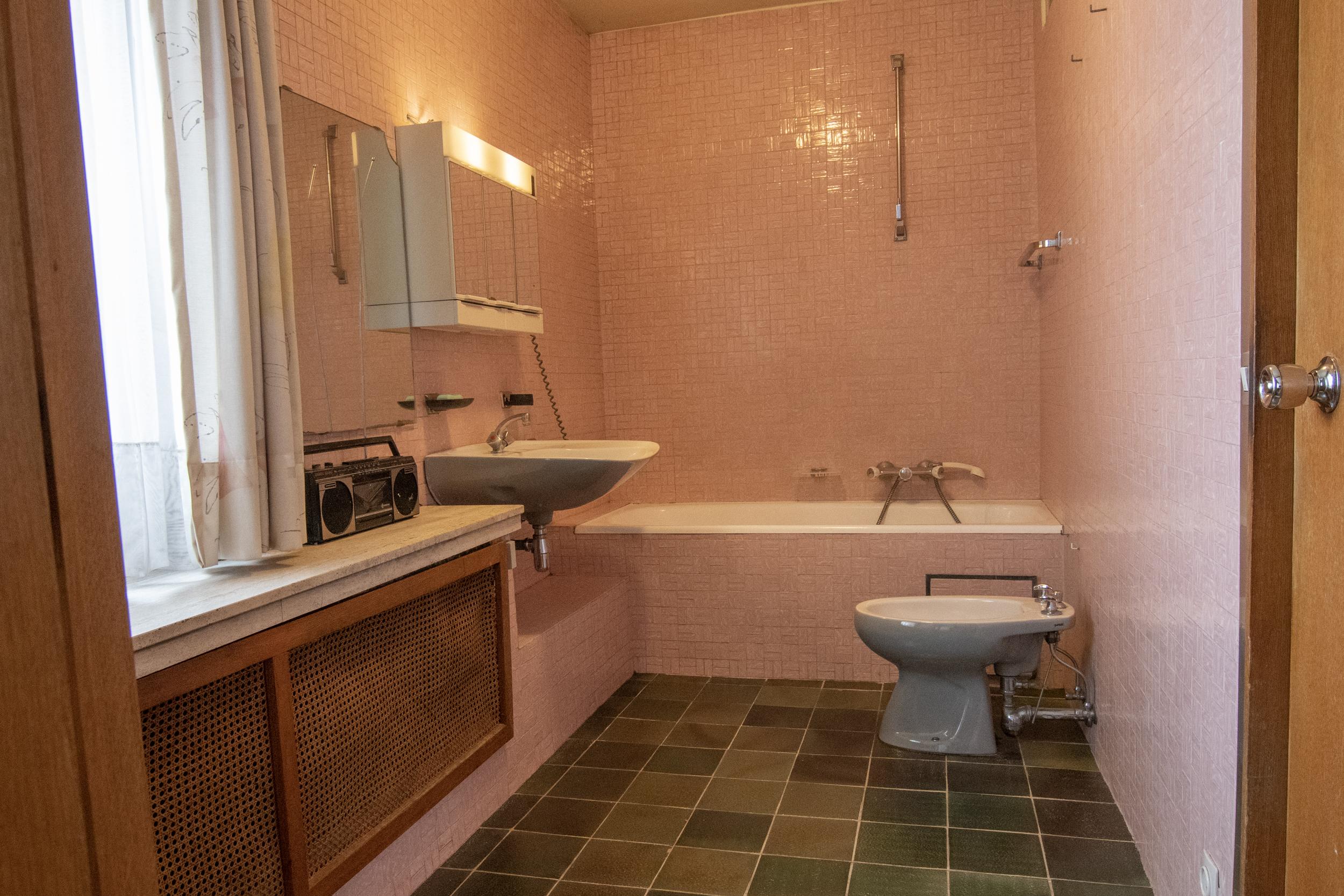 Parkeergelegenheid in overvloed, naast de inpandige garage met automatische poort, zijn er tegenover de woning tal van gratis parkeerplaatsen. Mits een aantal renovaties ( oa lift en mazoutketel) is deze woning instapklaar.